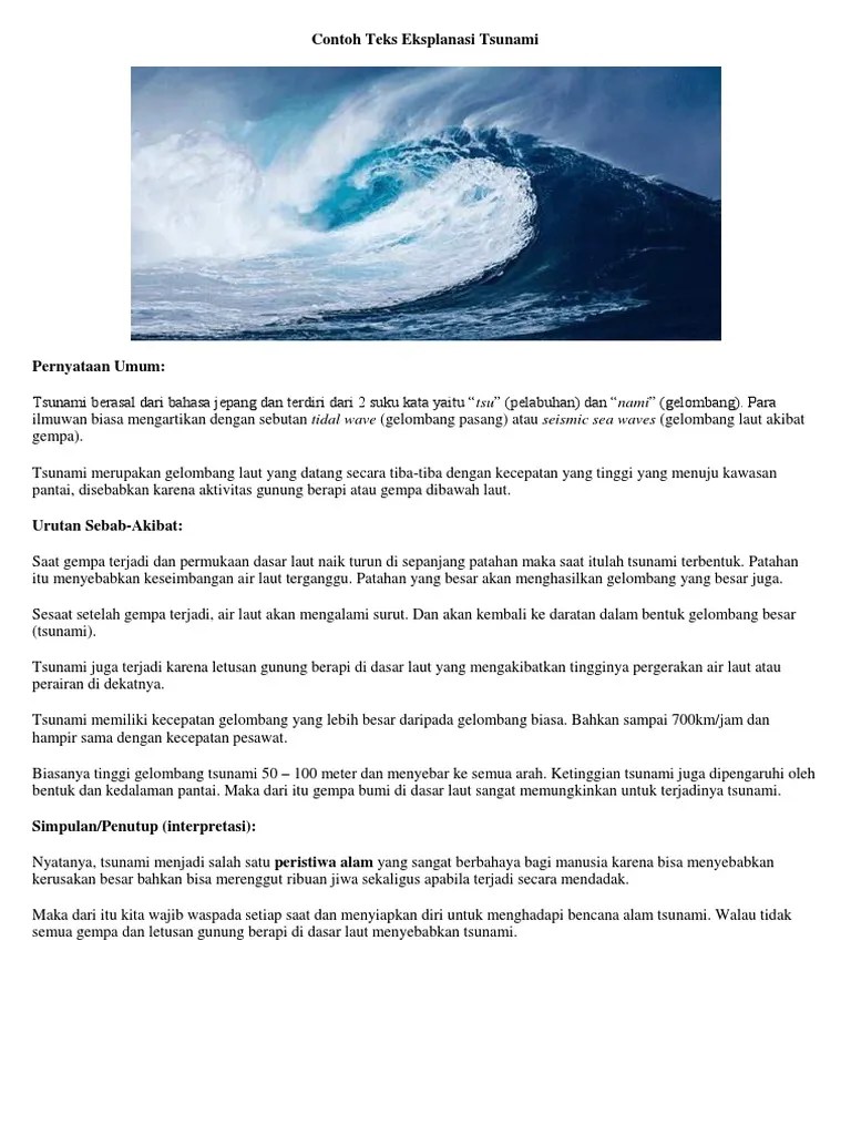 Banyak sekali peristiwa alam yang terjadi di bumi kita seperti tsunami, banjir, gunung meletus, tanah longsor, . Seperti apa contoh teks eksplanasi? 5 contoh teks eksplanasi tentang gempa bumi berikut contoh teks yang sudah kami sertakan struktur teksnya : Jika air tersebut menembus sampai . Peristiwa alam bencana longsor ini .